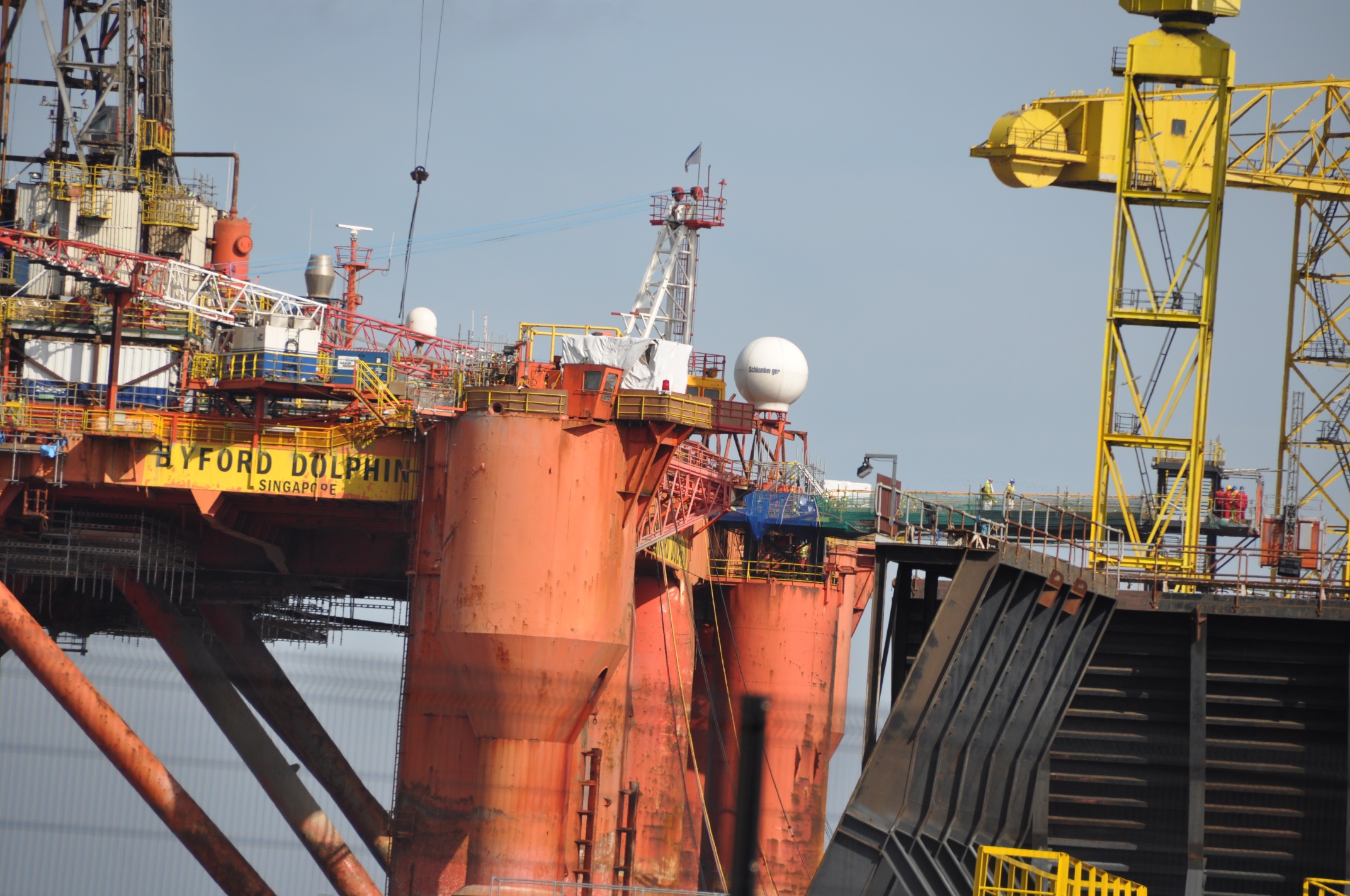 Harland & Wolff has not actually built any ships for the past decade, but work continues on other engineering projects, such as renewal and maintenance of oil rigs. The next photo was taken in March 2015.