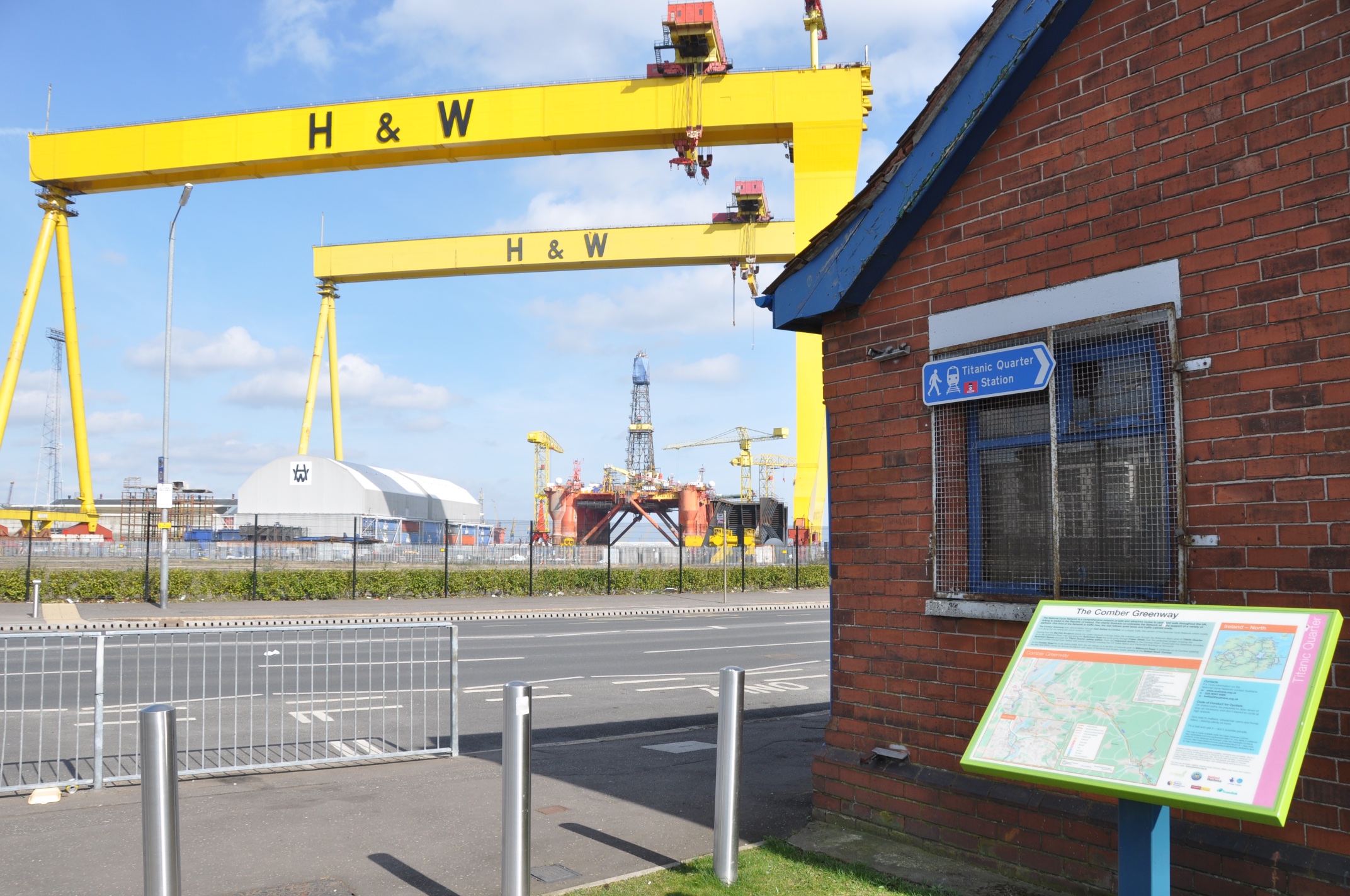 The western end of the Greenway on Sydenham Road offers a good view of Belfast’s shipyard cranes.