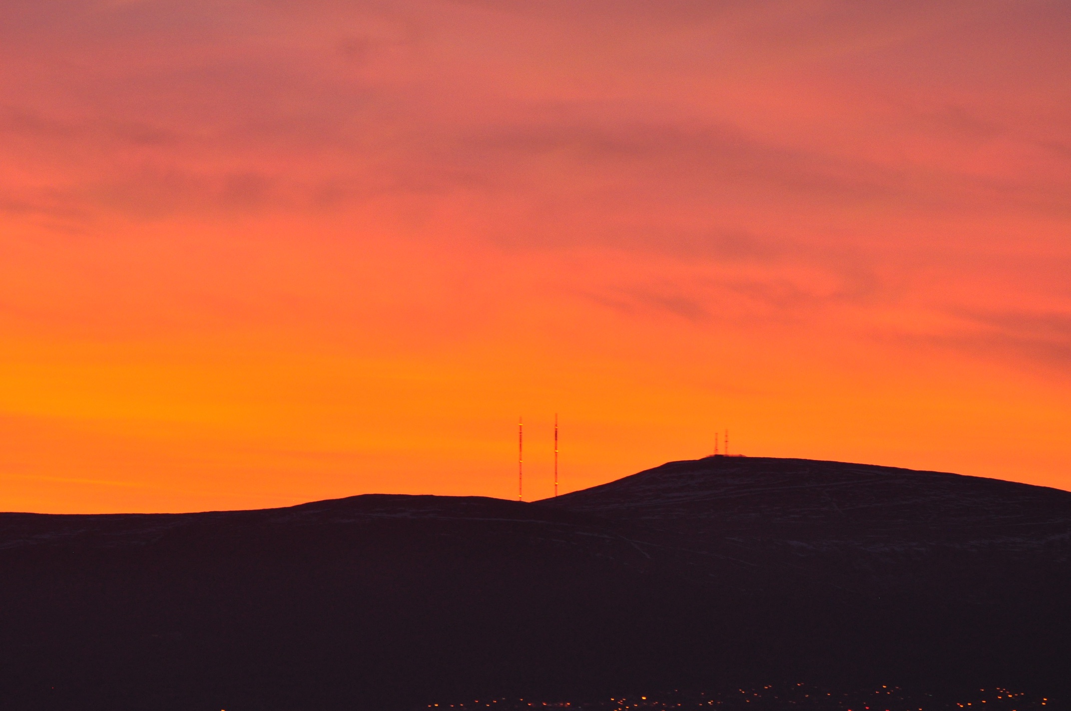 One year later, the moon was setting behind the TV transmitters.