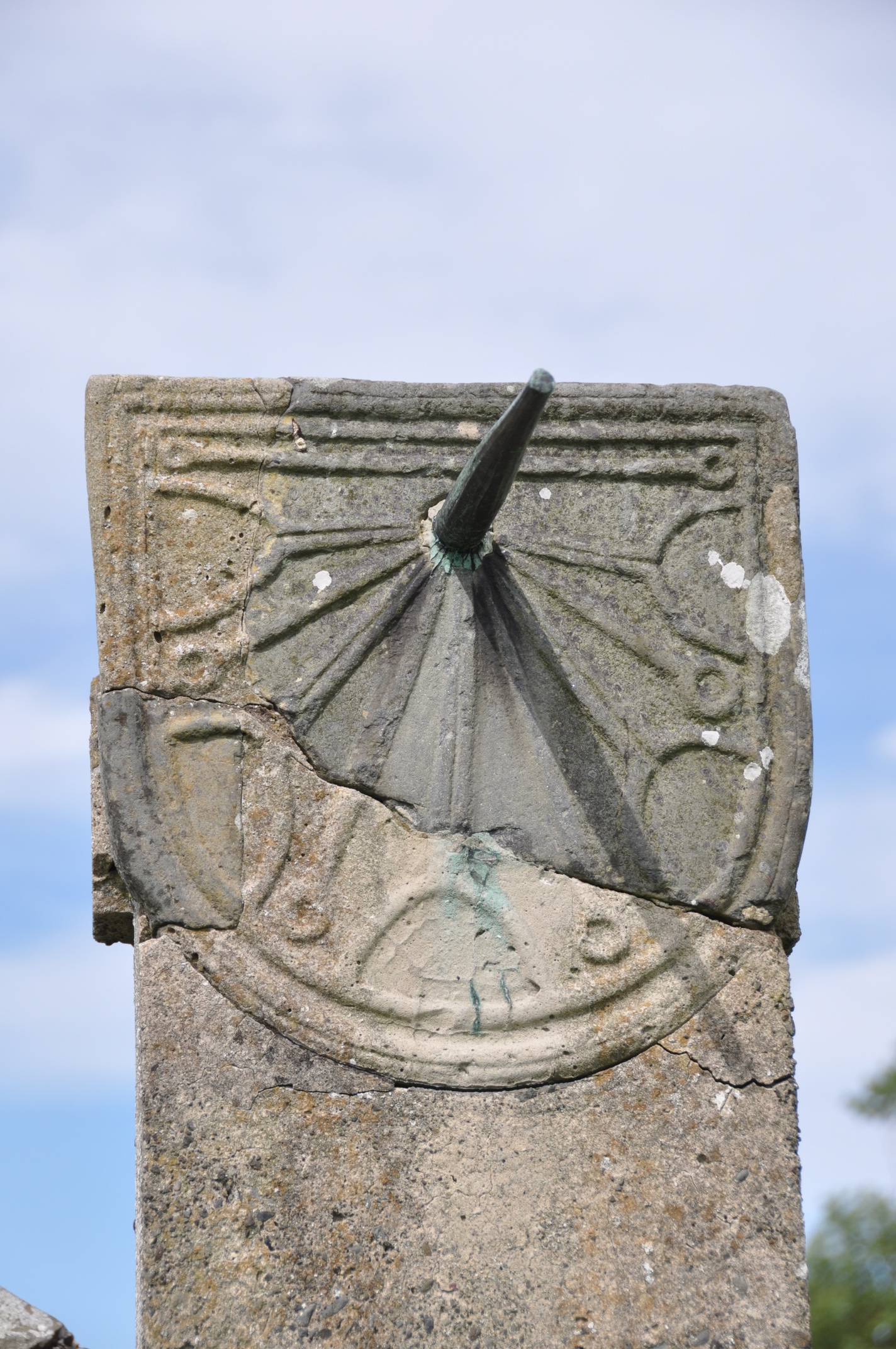 Parts of a sundial were discovered during the excavations of the 1920s, and it has since been reconstructed.