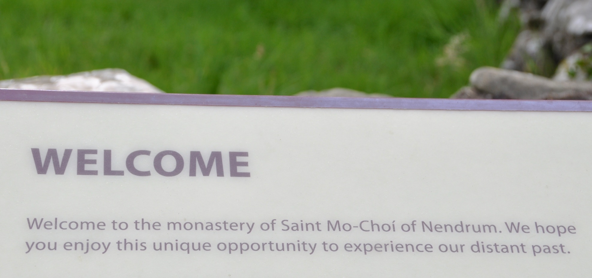 As you can see from the signs, the main attraction of Mahee Island is Nendrum Monastic Site. Tradition says that an associate of Saint Patrick founded a church here in the 5th century. His name was Mo Chaoi, anglicized in the townland name as Mahee.
