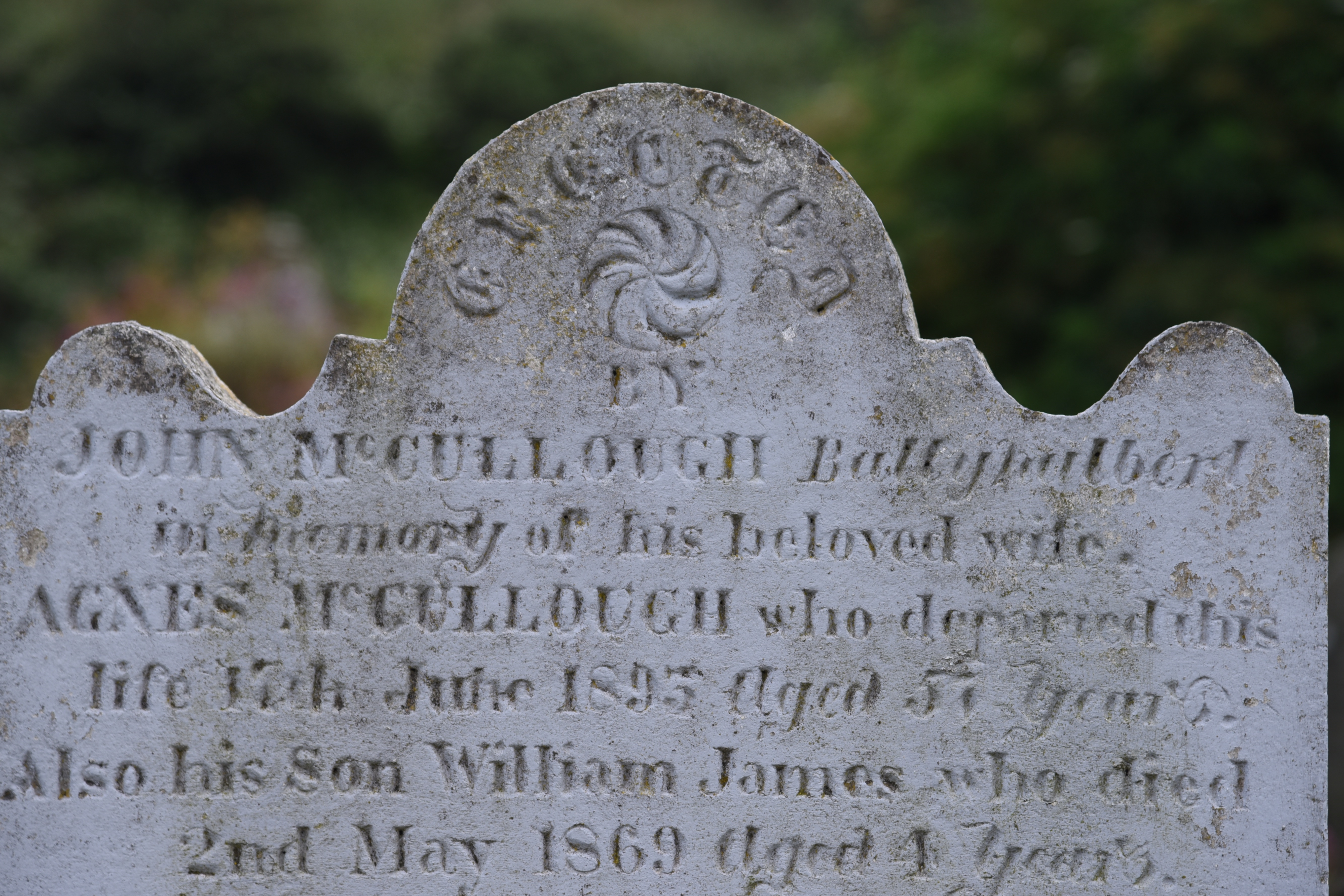 I finish with two photos of the townland name on gravestones for the families of McCullough (1893) and Coffey (1846).