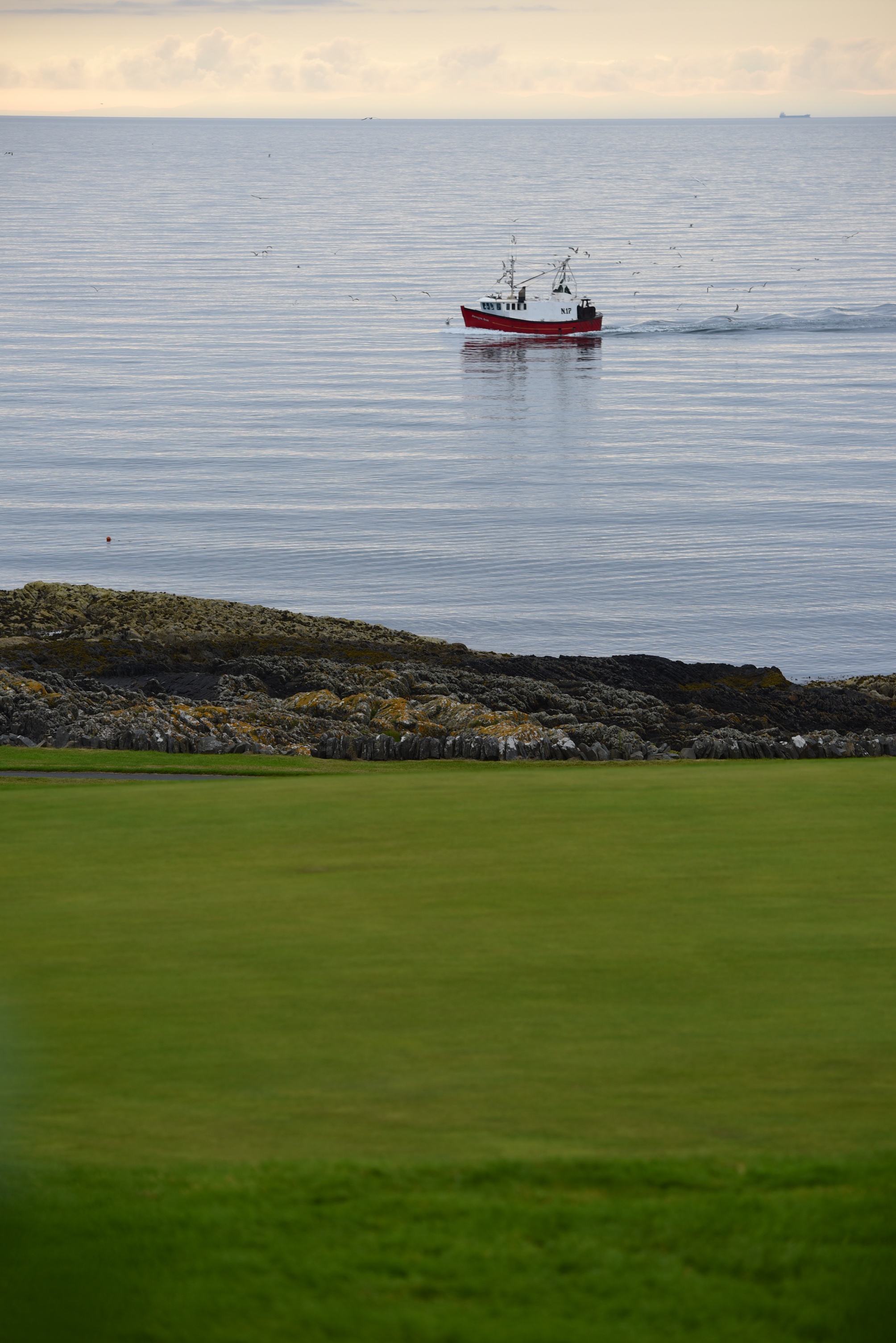 Another boat was coming in to join them. The neat grass in the foreground is part of Ardglass Golf Club.