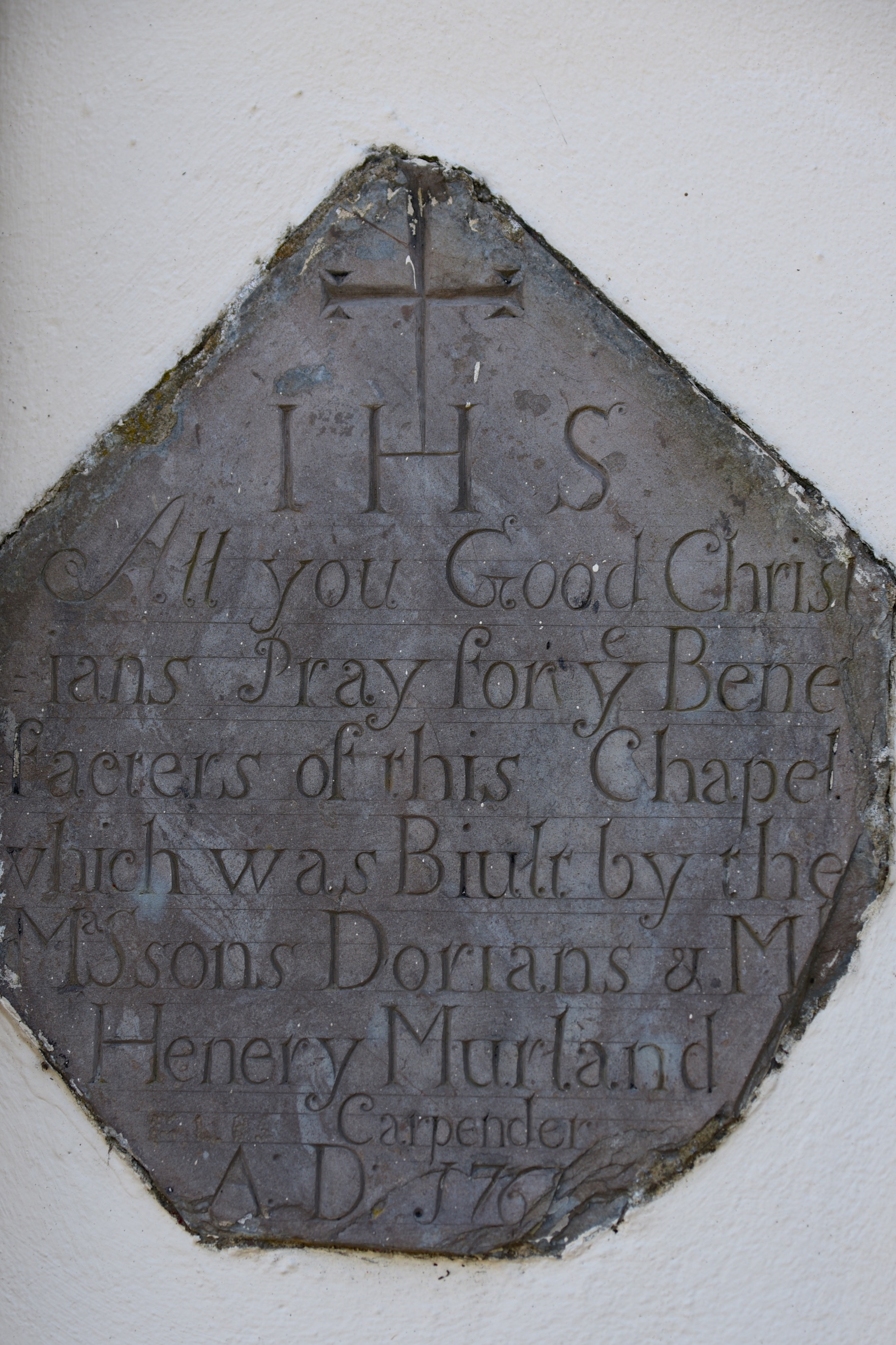 This Catholic church has been extended and renovated several times, but a sign from 1762 still commemorates the original builders, asking that “All you good Christians pray for ye Benefacters of this chapel which was biult by the masons Dorians and M Henery Murland Carpender”.