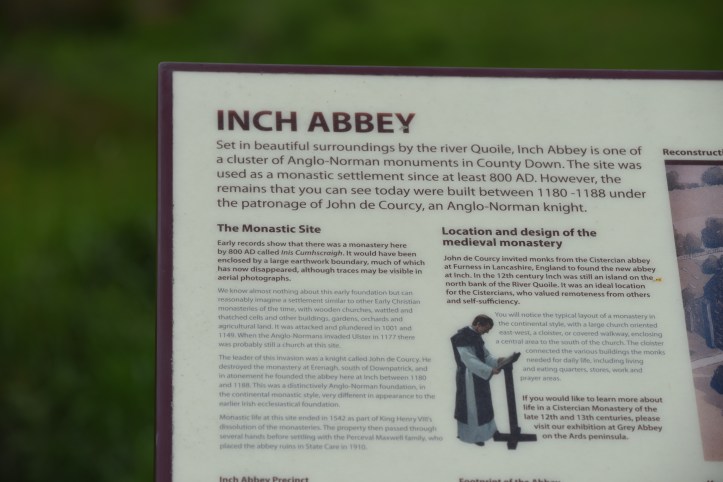 As the information panel says, the remains that we see today were built in the 1180s under the patronage of John de Courcy. De Courcy keeps cropping up on this blog – he was responsible for forts in Ballymarter, Dundonald and Holywood.