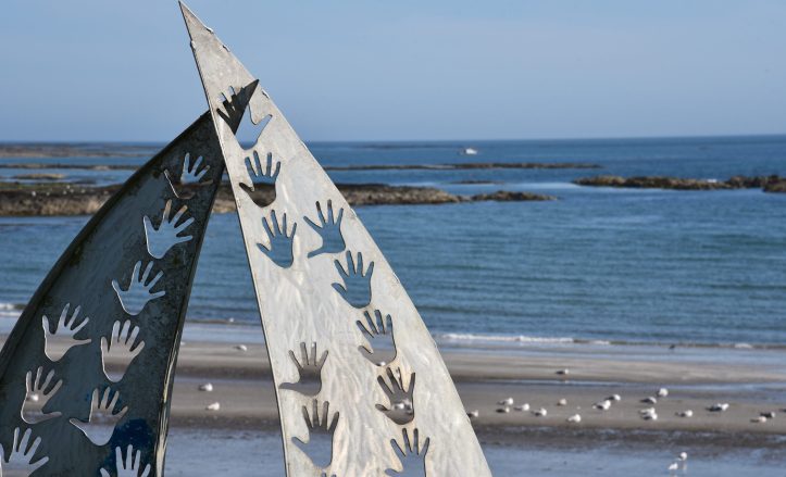 Back at the harbour, I consulted the Ballywalter Walking Leaflet to find out more about this statue.  It’s called “Echoes of Awareness”, and was created in 2001 by Ned Jackson Smyth, using handprints of local children.