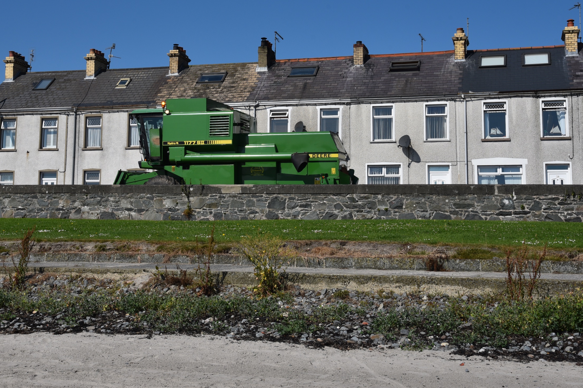 Walking on the beach on a sunny July day I spotted a combine harvester on the main street.