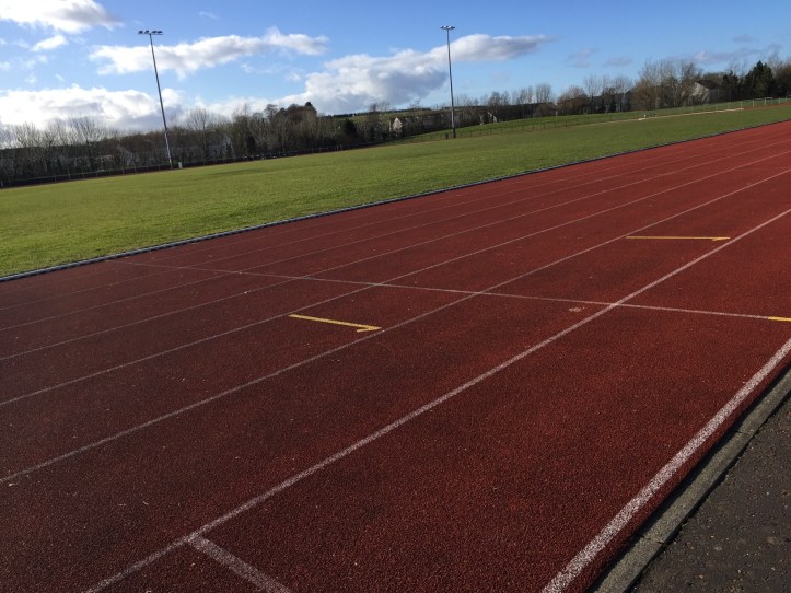 Despite the unappealing name, Bangor Bog is actually a lovely place. The bog has been turned into a children’s playground and a sports centre. This is the athletics track at Bangor Sportsplex.