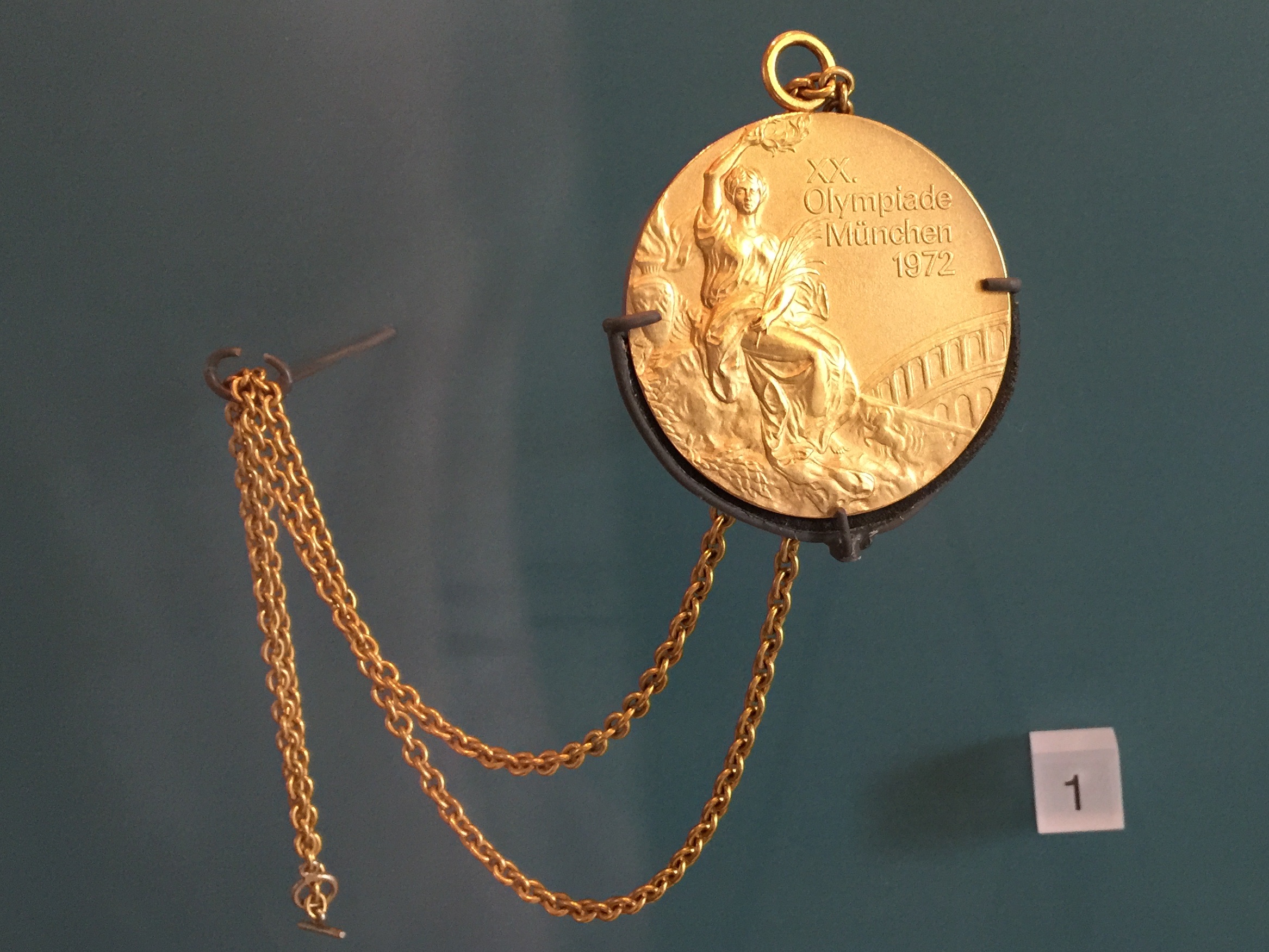 Dame Mary Peters won this gold medal in the pentathlon at the Olympic Games in Munich in 1972.
