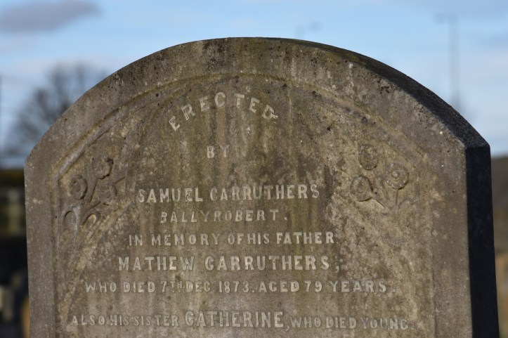 Finally, here is a gravestone from Holywood for the Carruthers family of Ballyrobert.