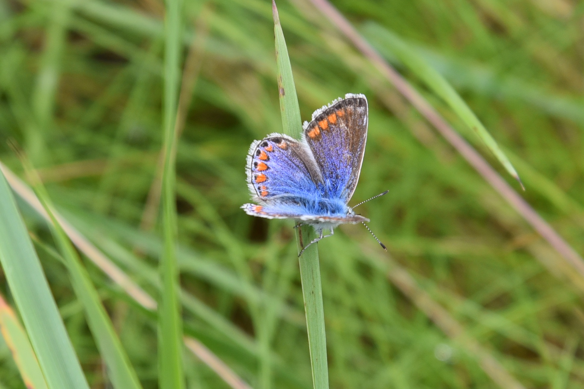 On the shore at Seahill I found a ringlet (brown with spots), a six-spot burnet moth (black with red spots), and two common blue butterflies (one more blue than the other).