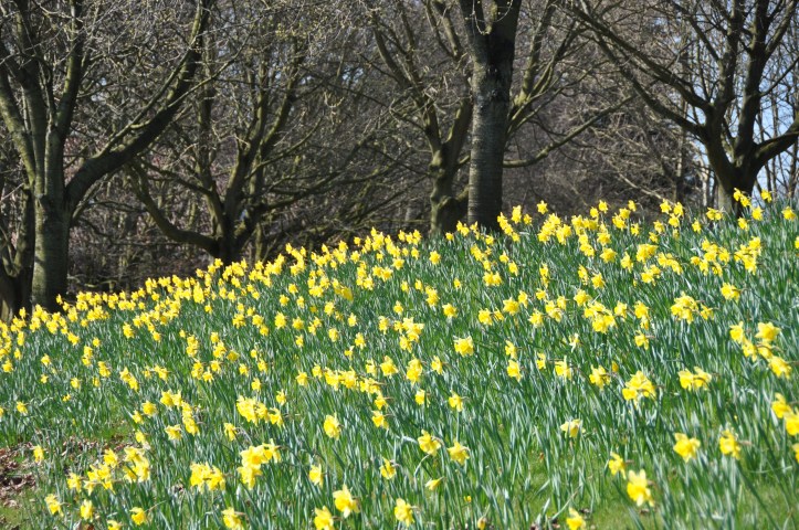 The daffodils aren’t blooming this month, but the robin is probably still in the trees.