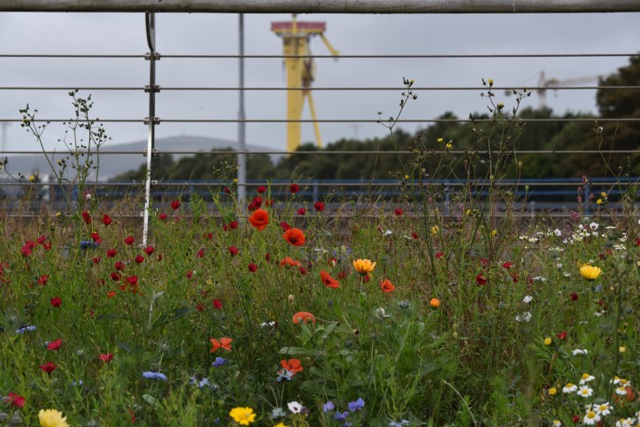 So where is the strand? There’s no beach here, just a muddy river called the Connswater. But in the past, before the marsh was drained and land reclaimed from Belfast Lough, there was a wide sea estuary. I was surprised by the number of birds at the river, especially starlings (I should have remembered that I’d seen godwits not far away in Victoria Park four years ago).