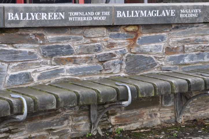 Did you see the benches in my post on Ballynahinch? I’m back in the same market square to collect two more townlands: Ballymaglave North and Ballymaglave South.