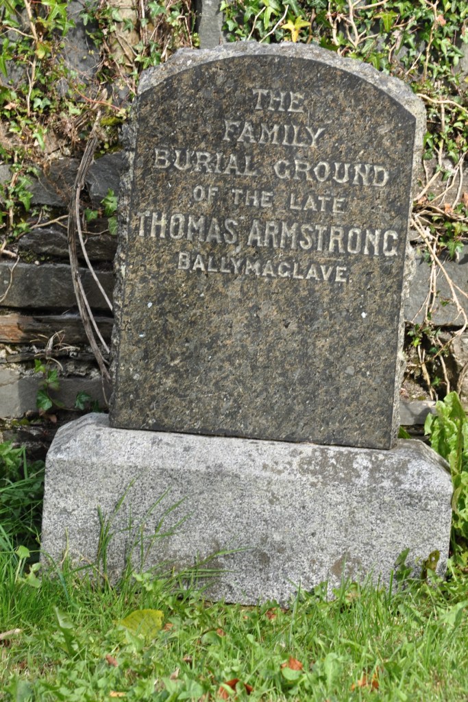 In the Church of Ireland graveyard in Ballynahinch I found this gravestone for the Armstrong family.