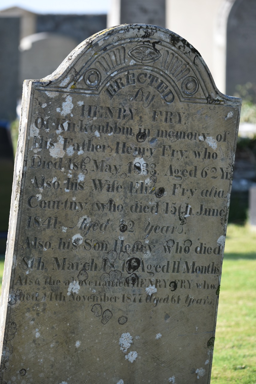 The only Study required today was research into the name of the townland. The website of the Northern Ireland Place-name Project suggests that the Irish name was Cill Ghobáin meaning ‘Gobán’s church’. Translating Cill into the Scots ‘Kirk’ gave us Kirkcubbin. That spelling with the second K still appears on this church sign, and on the Fry family gravestone from 1833.