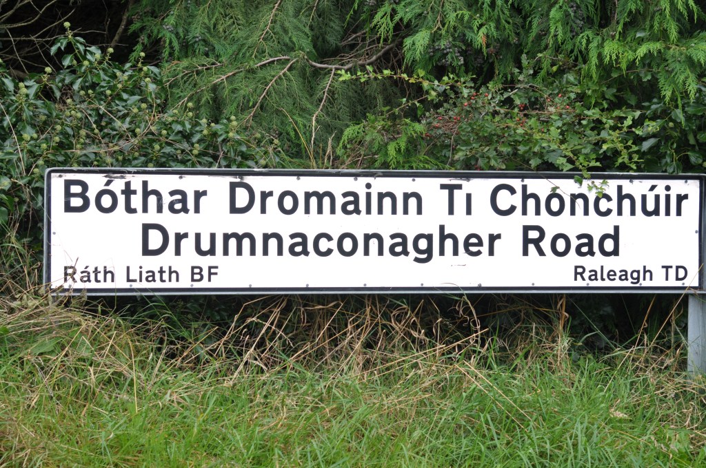I showed the next image to illustrate one of the ways in which road signs can display townland names in both Irish and English. Raleagh and Drumnaconagher are neighbouring townlands to the south of Ballynahinch.
